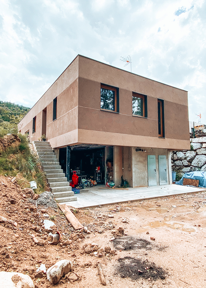 La construcció amb entramat lleuger de fusta redueix el temps d’execució i minimitza la petjada ecològica. La façana tipus SATE amb arrebossat de calç i aïllament de fibres de fusta garanteix una excel·lent eficiència energètica i transpirabilitat dels murs.